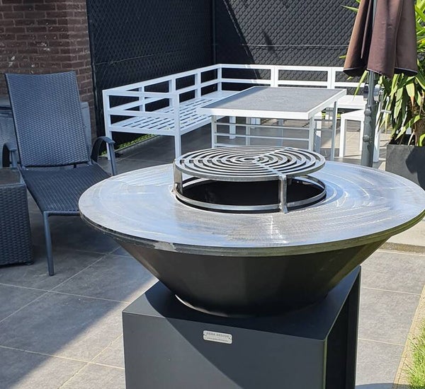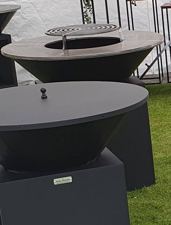 Deze bakplaat barbecue met zijn uniek design geeft een nieuwe dimensie aan uw tuinfeest. maak ook de koude voor of na jaarsavonden supergezellig en maak gebruik van dit multifunctioneel buitenkooktoestel waarop je kan bakken braden, stoofvlees kan bereiden, spaghettisaus, kortom onbeperkte mogelijkheden. Er is altijd een deksel en rooster bij de prijs inbegrepen zodat het ook een streling is voor het oog als je hem niet in gebruik hebt. Dit is een toestel dat je zin doet krijgen voor het buitenleven en garandeert een levenslang plezier. Ontworpen en gefabriceerd met een passie voor metaalbewerking, afgewerkt alsof ze voor mezelf zouden zijn! Bij dit model is de bakplaat vierkant of diameter 900 cm en 10 mm dik